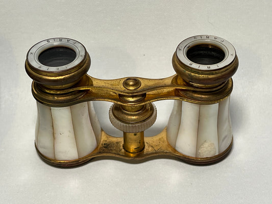 Antique Iris Opera Glasses, Mother of Pearl and Brass, Made in Paris, Includes Original Case