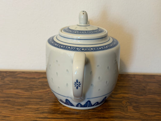 Chinese Blue and White Porcelain Teapot Featuring Rice Grain Pattern
