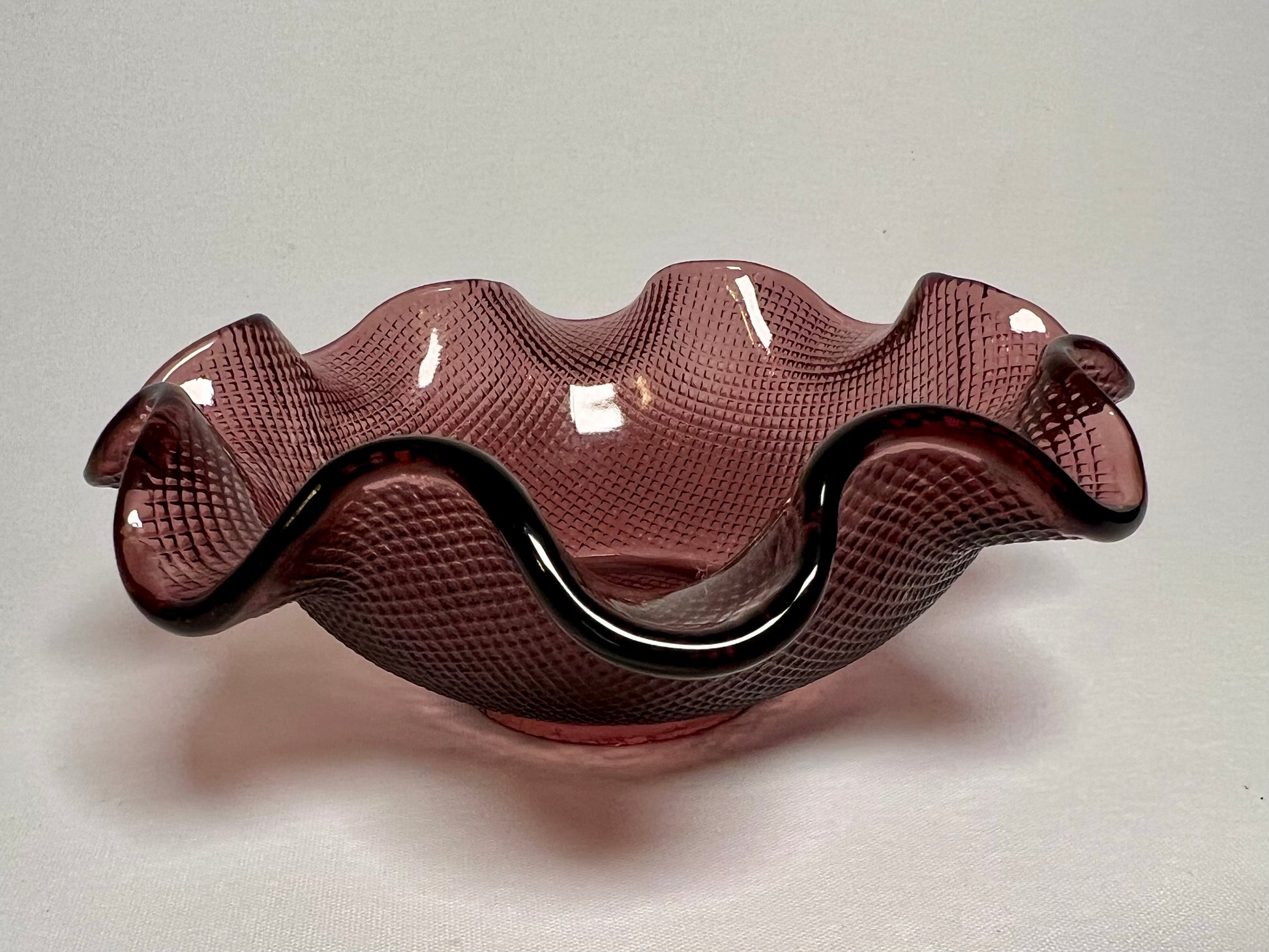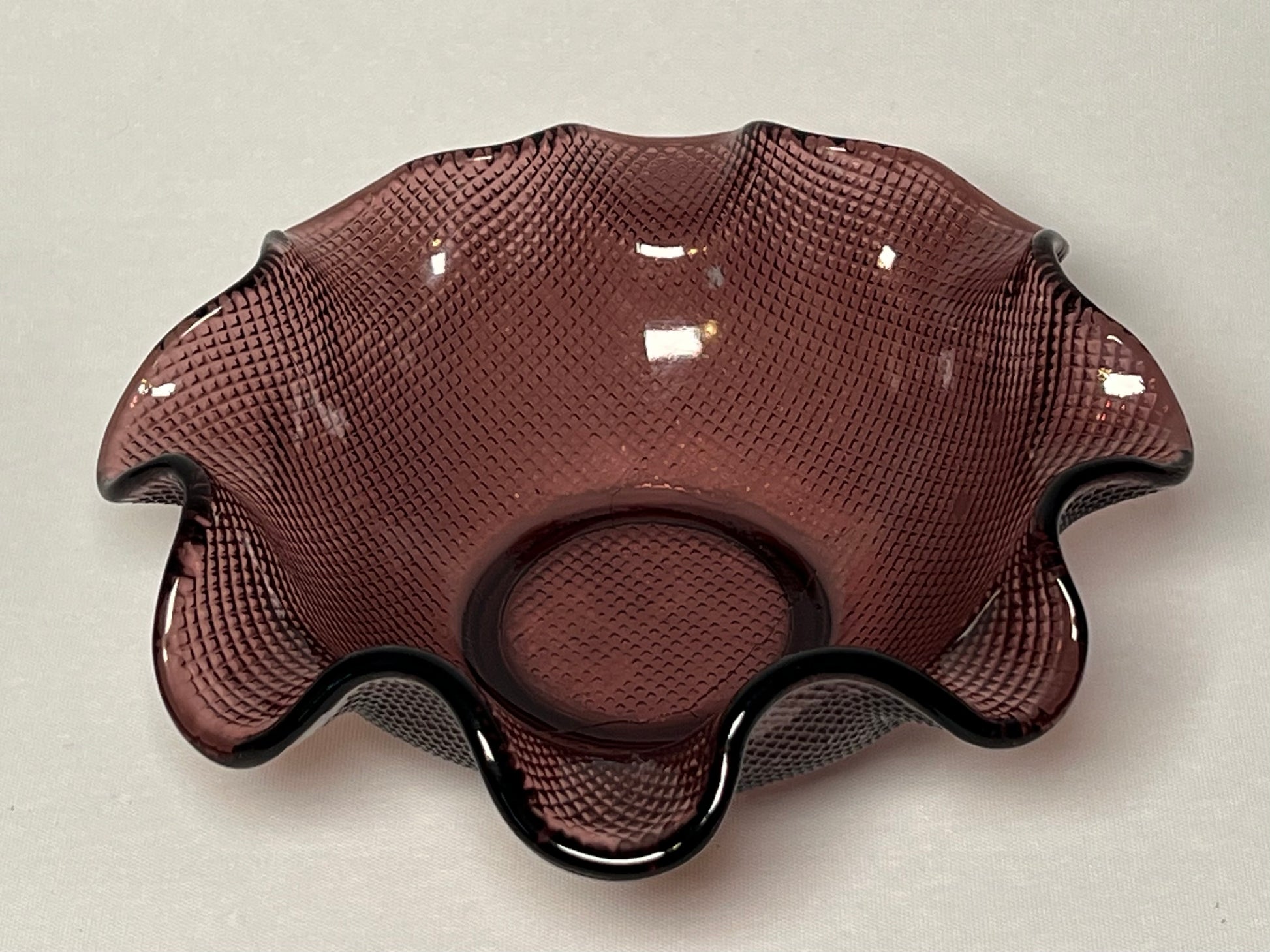 Amethyst Waffle Glass Bowl w/ Ruffled Edge by Colony